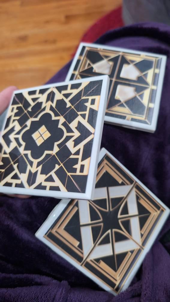 Art Deco Black & Gold Ceramic Tile | Vintage Geometric Decor | Gothic Glam Accent Tile