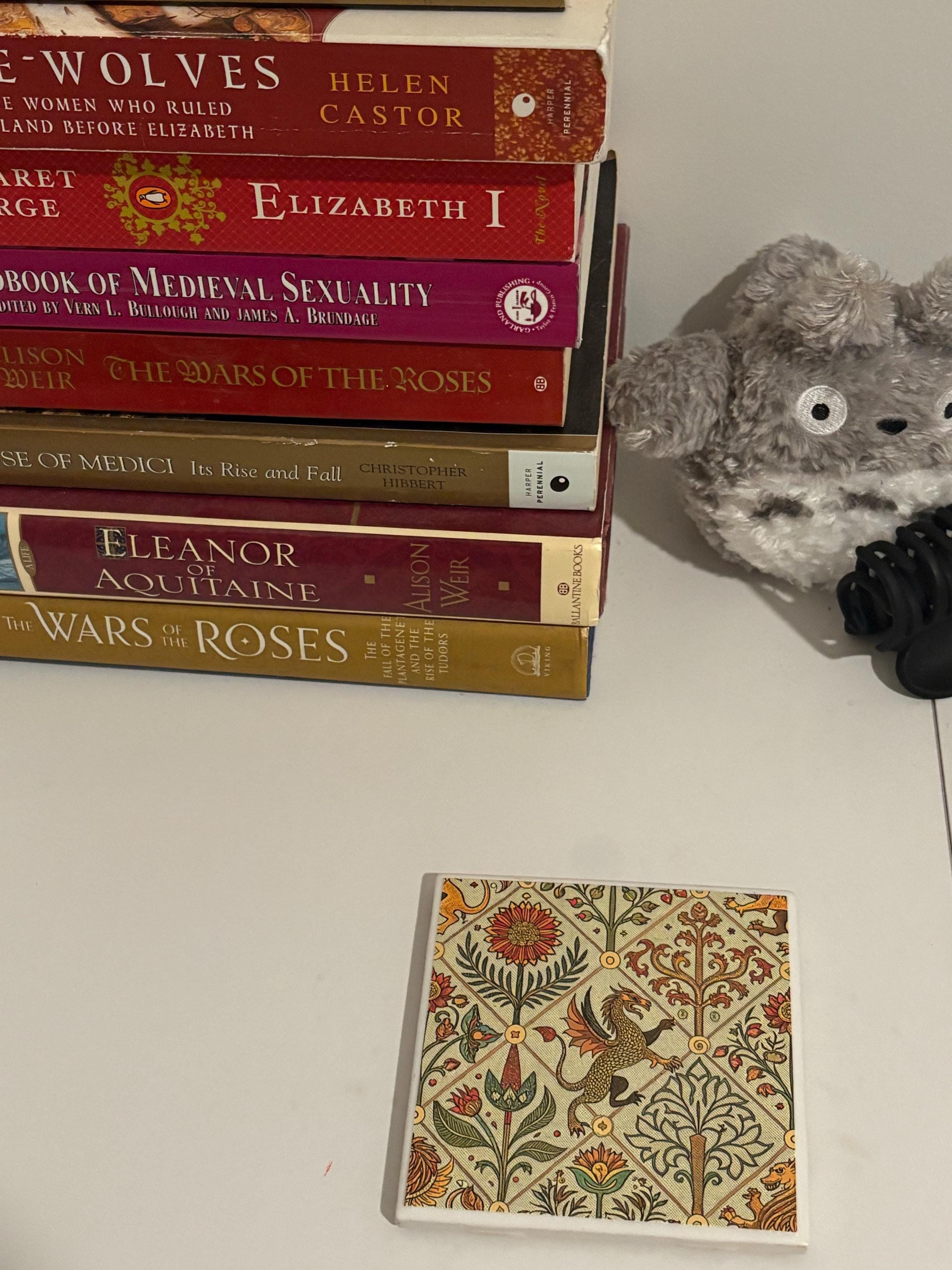 Featuring birds, beasts, and dragons woven among botanical motifs, each design feels as though it was lifted from the margins of a centuries-old text.